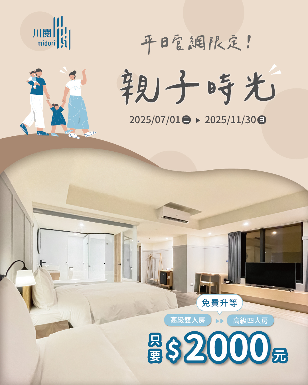 【親子時光】免費升等高級四人房